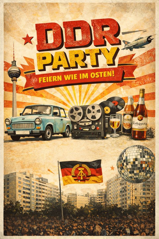 Am Donnerstag den 26.02.2026 ab 19 Uhr öffnet die DDR-Party ihre Türen – und du bist dabei!